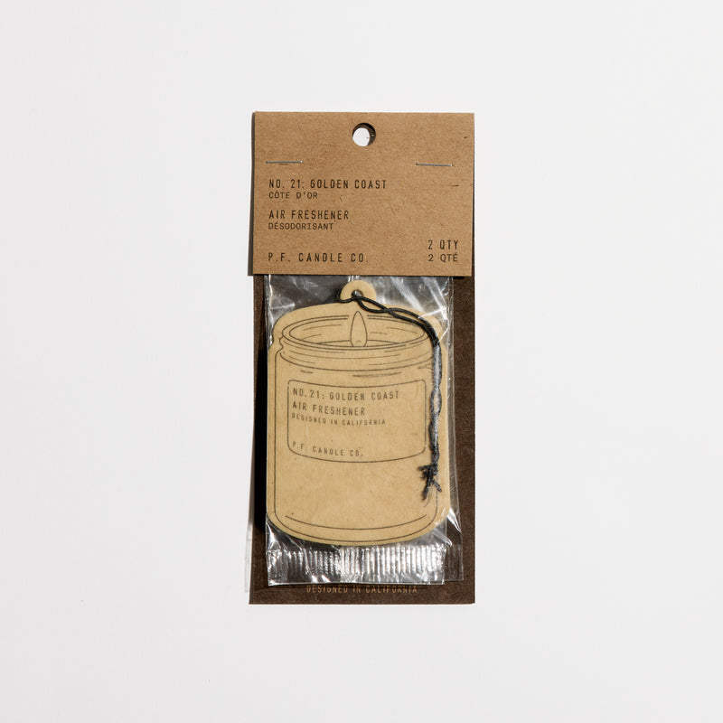 Air Fresheners are pre-packed in pairs, featuring an iconic P.F. Candle-shape and signature kraft paper look. Available in 8 best-selling Classic Line scents.