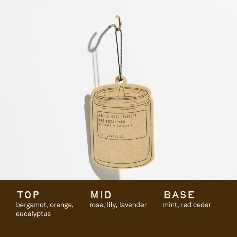 Air Fresheners are pre-packed in pairs, featuring an iconic P.F. Candle-shape and signature kraft paper look. Available in 8 best-selling Classic Line scents.