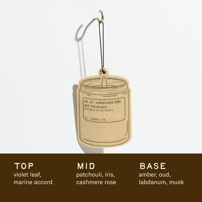 Air Fresheners are pre-packed in pairs, featuring an iconic P.F. Candle-shape and signature kraft paper look. Available in 8 best-selling Classic Line scents.